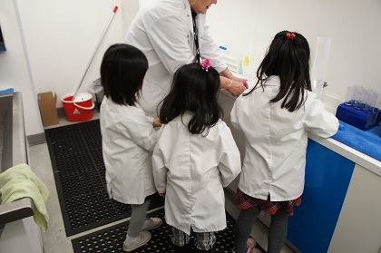 英語のレッスンの成果もあるのでしょうか、子どもたちは自分たちで興味をもった職業を見つけ、積極的に楽しんでいる様子でした。